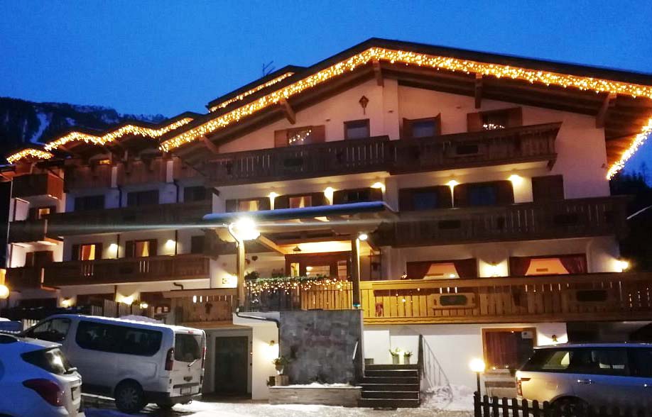 Hotellet ligger centralt i Predazzo och har nära till det mesta. Trivsam restaurang, bar och bodega i nedre planet där roliga upptåg ordnas under veckans lopp. Här finns relaxavdelning med bubbelbad och bastu som ingår i priset. Värdparet tar mycket väl hand om sina gäster.