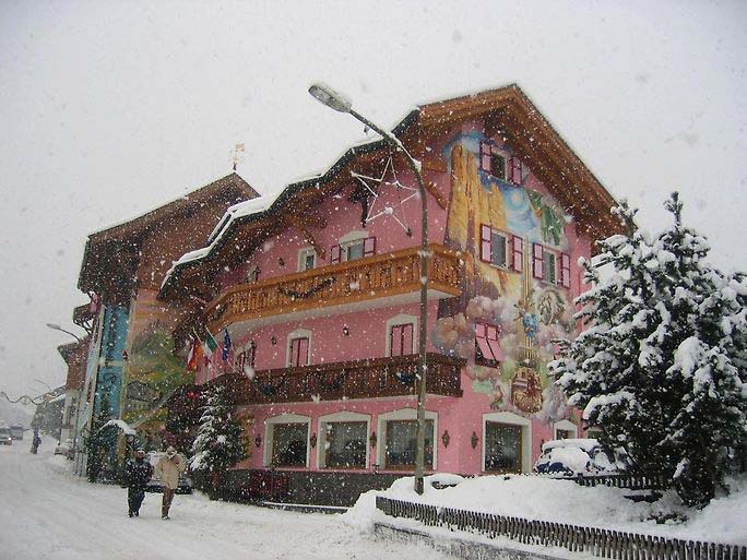 Hotellet ligger i centrum av Pozza, 300 m från kabinbanan till Canazei och Alba. Vår buss parkerar utanför dörren av hotellet som är ett familjehotell med en fasad som mycket lätt känns igen med sina målningar i vackra färger. Gångavstånd till kabinbanan. Här finns det bekväma och trevliga rum, bar med generösa utrymmen och relax ingår med bastu och bubbelbad mot tillägg.
